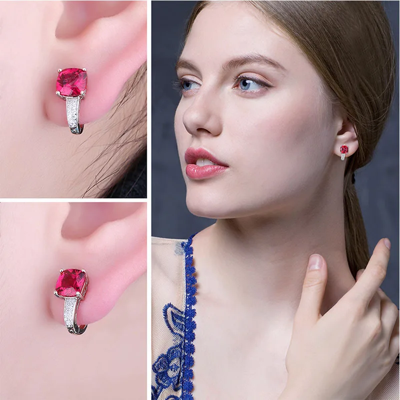 - Exquisite jewelry set includes a stunning lab-grown green emerald or lab grown ruby ring, pendant necklace, and hoop earrings