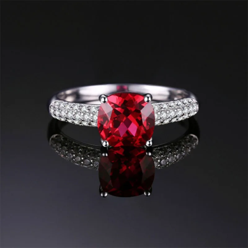 - Ring: 2.9ct Cushion Cut Lab Grown Emerald or Ruby (7mm x 7mm)